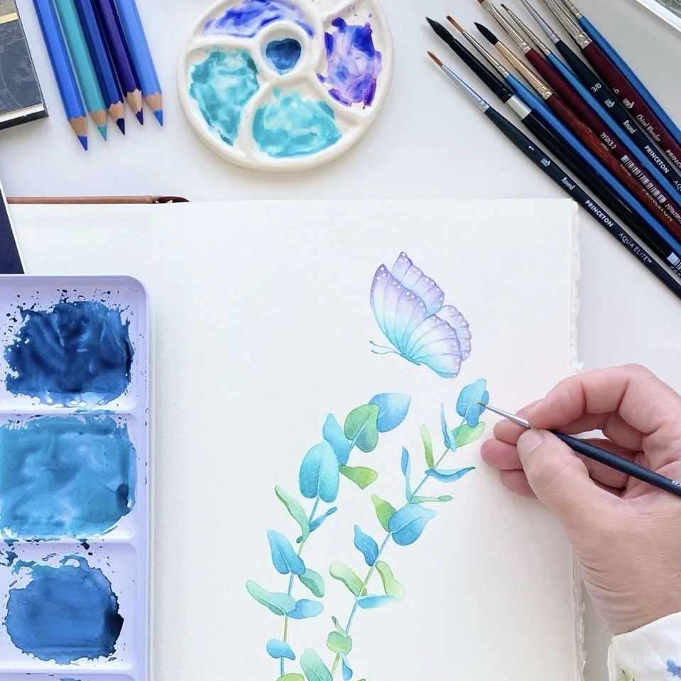 Alma Colours is an Italian watercolour artist based in Abu Dhabi. Her work is inspired by nature’s beauty and symbolism, with butterflies and botanicals recurring as messengers of hope, transformation, and new beginnings. Using luminous, transparent layers, she creates soft, ethereal paintings that invite a sense of calm and connection.